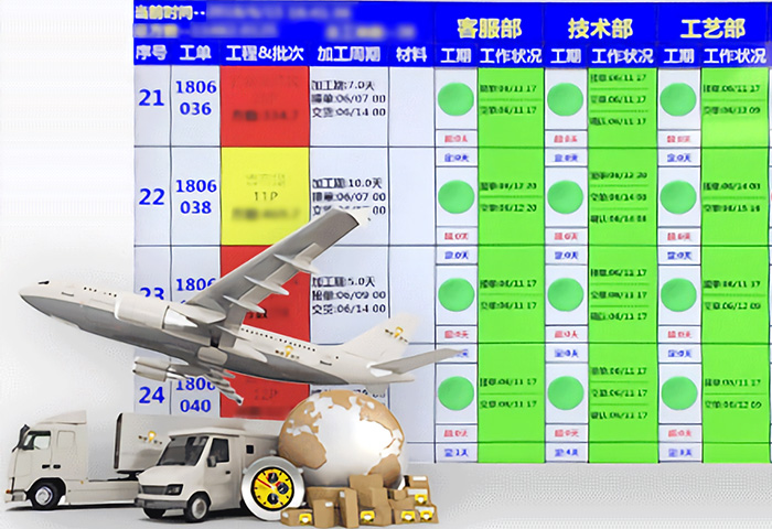 正一金屬科技為實現100%按期交付,自主開發(fā)交期監(jiān)管APP軟件,實時掌握訂單信息,智能遠程生產、物流進度及狀況監(jiān)控管理,結合成熟的物流管理體系,確保能在約定交期之前,完成產品交付。